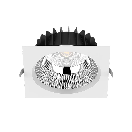 This is a square COB downlight, adopting high lumen COB LED to reach high efficiency. AL6063 aluminum housing provides a great thermal management that ensures a long lifespan, combined with the optic design, it can reach UGR<19 and offers better visual experience. To save on inventory and meet various customer needs, it can facilitate DIY replacement of different reflector and optic lens without requiring any tools. It offers decorative frosted drop glass ring and clear drop glass ring options, providing a softer light output and backlight effect.